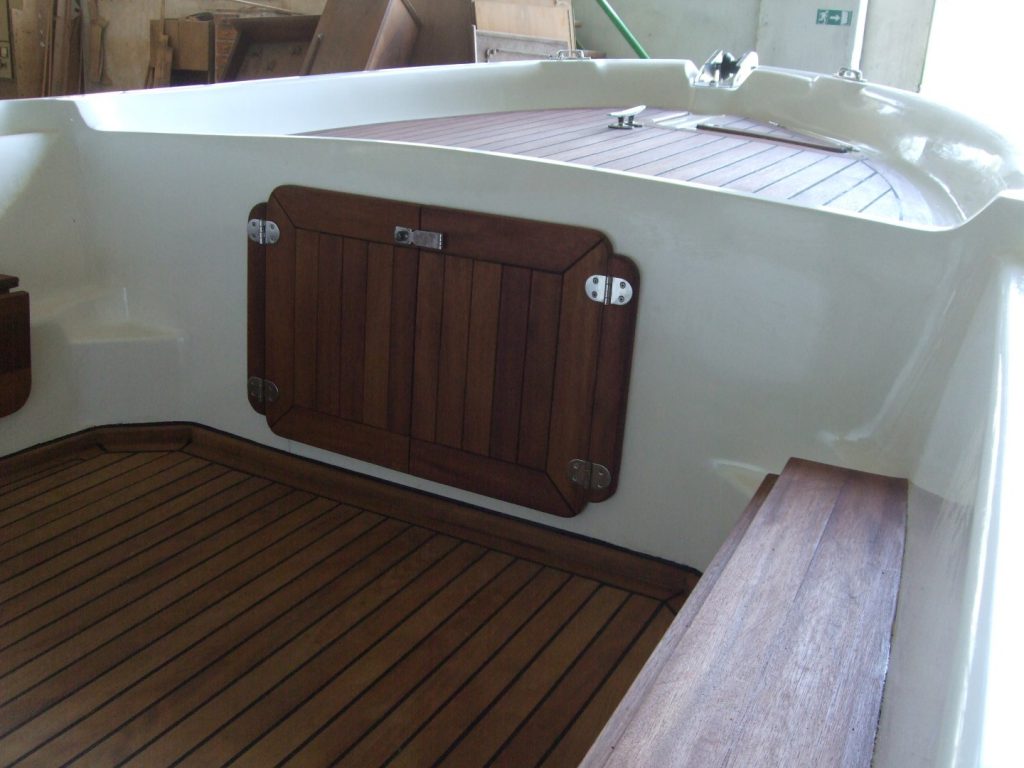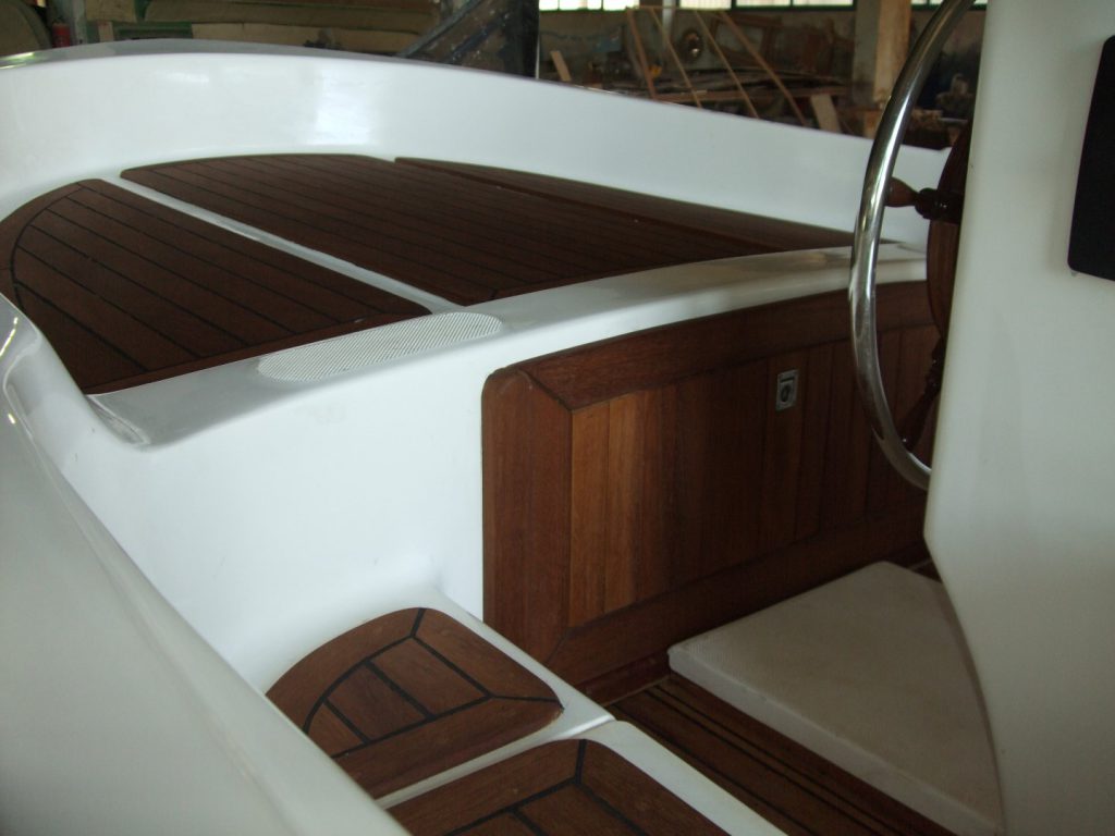 STANDART DONANIM: Paslanmaz çelik şaft, yağlama gresörlüğü, salmastrası, pirinç pervane, krom-nikel dümen yelpazesi, ağaç motor kasası, sintine pompası ve bağlantısı, iskele-sancak feneri, elektrik tesisatı, sviç ve sigortaları, motor montajı, motor bağlantısında vana, kepçe, egzoz sistemi çıkışı, waterlock, goose neck, hortumları/kelepçeleri/bağlantısı, direksiyon simidi/sistemi ve kablosu, rimot kontrol sistemi ve kablosu, ön demir, çekme makarası, baş ve arka taraf ip bağlama halkası, krom-nikel U çeki demiri, 25 litre yakıt deposu, bayrak direği, 90 amper akü, akü devre kesici.
