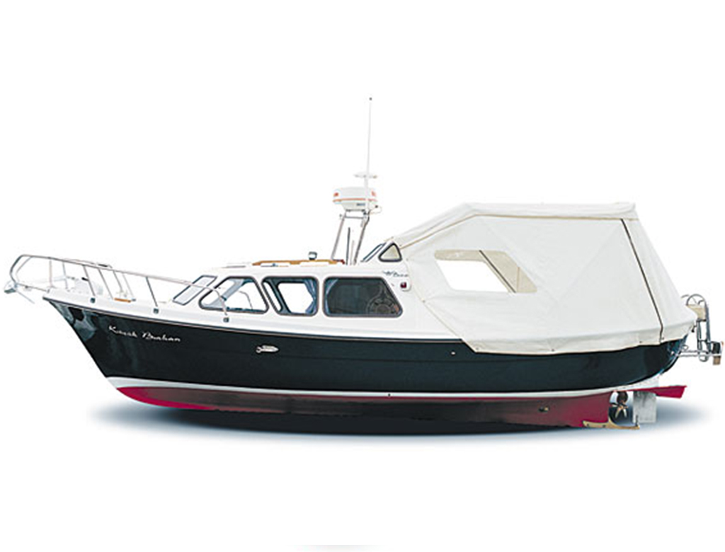 Stainless steel shaft, lubricating nipple, gasket, brass propeller, chrome-nickel rudder range, plexiglass chamber windows, securit hood windows, opening window giving access to deck from cabin other lockers with hinged lid, mahogany veneered bulkheads, cabin door with lock, double bed space, exit hatch cover to the deck 3 hinged compartments suitable for storing materials, chain holder and hinged cover, chrome-nickel front railing, chrome-nickel ladder, wooden motor case, wooden headlights, portable WC, kitchen cabinet and sink, faucet-booster-water tank and connection, bilge pump and its connection, pier-starboard light, cabin lamp, electrical installation, switches and fuses, engine assembly, valve in engine connection, exhaust system outlet, water lock, goose neck, hoses / clamps / connection, steering wheel / system and cable , remote control system and cable, fore chain roller, cleats, stainless steel U shaped towing hook, inner and outer cushions, 25 liter fuel tank, flag pole, battery, battery circuit breaker.